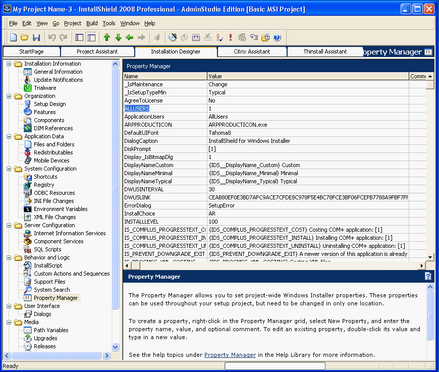 - Create a new Basic MSI Project in the InstallShield Editor.