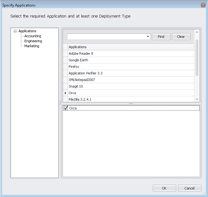 9. Click Add . The Specify Applications dialog box opens, which provides a tree structure that you can use to select an App-V 5.0 application. ![](/images/VE_Specify Apps.png)