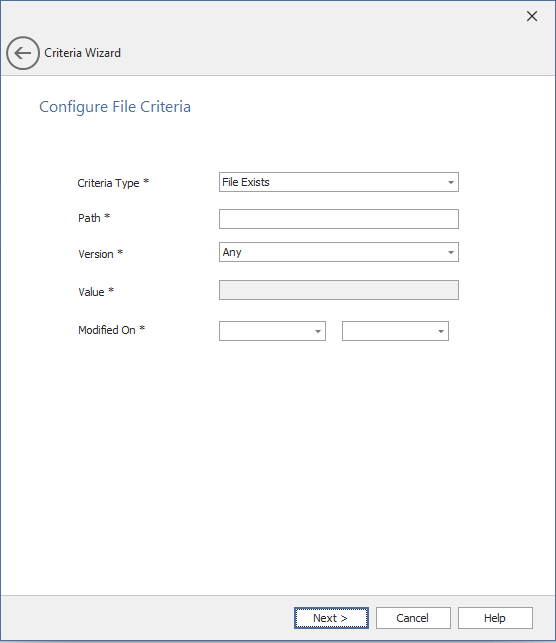 | Criteria Type | Select one of the following Criteria Type: File Exists File does not exist |