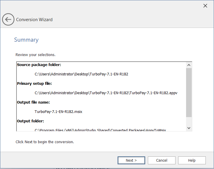1. Set App-V to MSIX conversion options, as described in Setting App-V to MSIX Conversion Options.